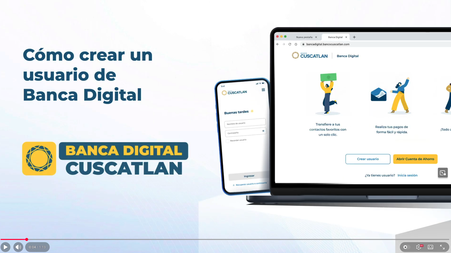Para registrarte puedes descargar la App CUSCATLAN HN o ir a la opción 'Crear usuario'. Necesitas tener un producto vigente con el Banco (Cuenta Bancaria o Tarjeta de Crédito).